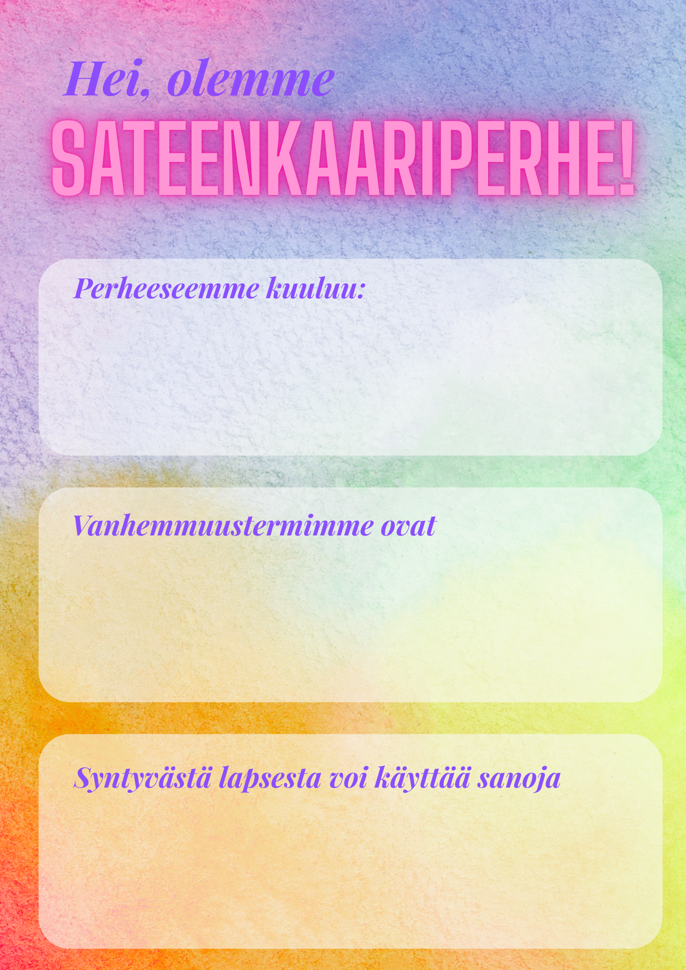 Lataa tästä tulostettava sateenkaareva esittelypohja (.pdf) teidän perheestä kätilölle annettavaksi